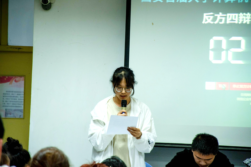 本次辩论赛决赛包括双方立论、质询、对辩、盘问、自由辩论、总结陈词等环节。8位决赛选手组成正反双方,以“过程还是结果更能体现青年人奋斗的价值”为题展开辩论。正方认为“过程更能体现青年人奋斗的价值”;反方认为“结果更能体现青年人奋斗的价值”。八位辩手旁征博引,思路清晰,结合理论与现实展开了深层次的辩论,使现场气氛迅速升温。经过近一个小时的比赛,最终正方辩手略胜一筹获得冠军,正方二辩谷嘉炜、反方三辩陈冠洲凭借突出表现获得了本次辩论赛“最佳辩手”称号。