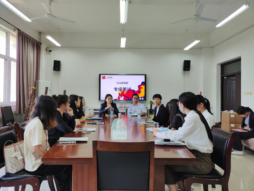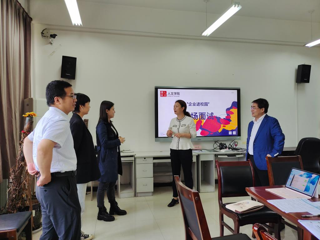 随后,侯冬颖一行与应聘学生进行了座谈,她从企业概况、业务范围、工作内容、薪资待遇等方面向新闻专业应聘毕业生进行了宣讲,并对学生在发展空间、招聘流程等方面疑问一一解答。会后,单位与应聘学生一对一开展面试。