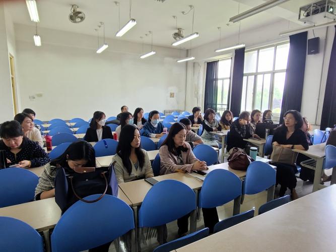 大学外语第一教学部党支部在鄠邑校区A区201教室召开学习贯彻习近平新时代中国特色社会主义思想主题教育政治理论学习暨教学工作会议。大学外语第一教学部全体教师参加会议。会议由党支部书记付俊芳主持。