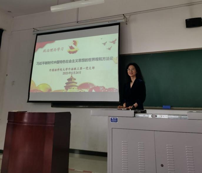 党支部副书记刘西娟领学了学习贯彻习近平新时代中国特色社会主义思想中共中央政治局第四次集体学习主要内容。党支部书记付俊芳作了重点发言。她谈到,习近平总书记强调,这次主题教育以学习贯彻习近平新时代中国特色社会主义思想为主题,推动全党把学习贯彻习近平新时代中国特色社会主义思想不断引向深入。我们要认真学深悟透习近平新时代中国特色社会主义思想,把握习近平新时代中国特色社会主义思想的世界观和方法论,并在教书育人实践中身体力行,不断探索,努力提升用习近平新时代中国特色社会主义思想铸魂育人实效。