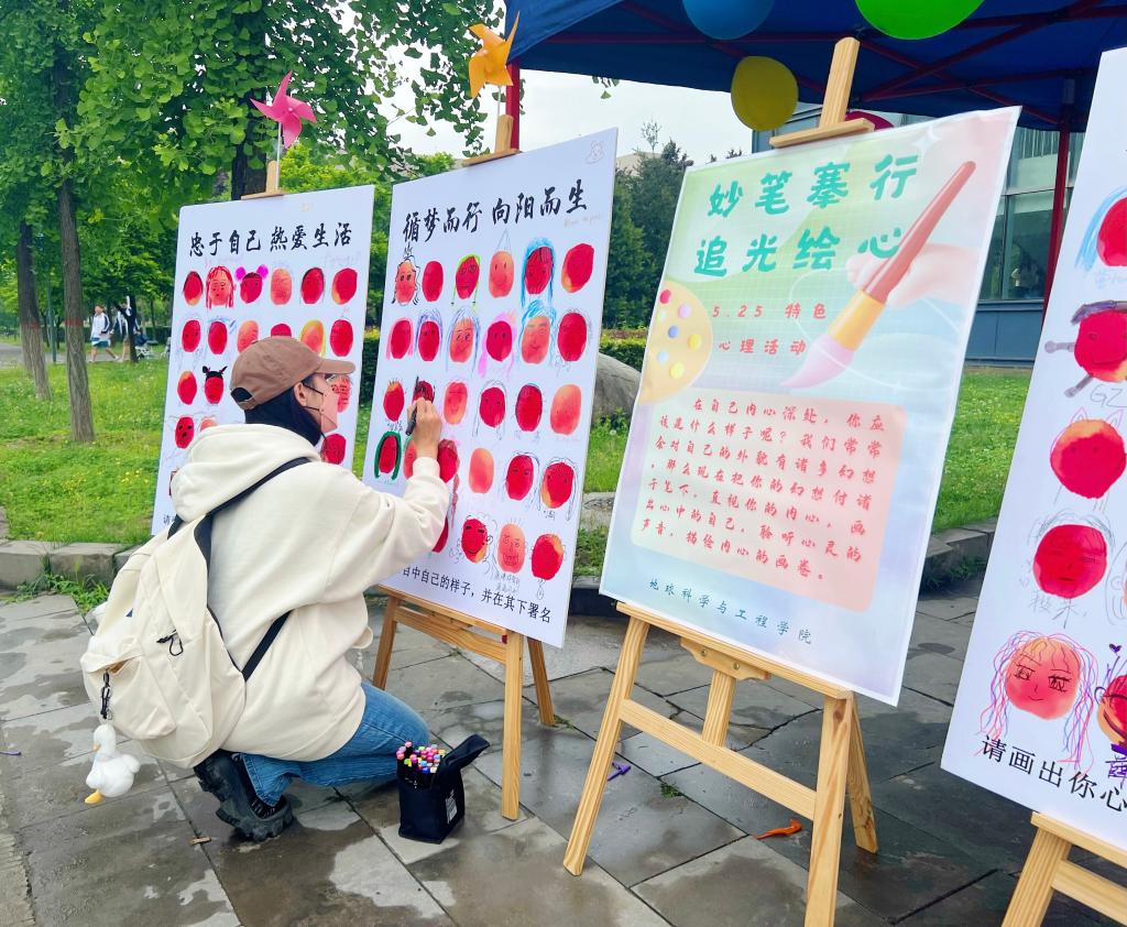于2023年5月24日至5月25日在鄠邑校区举办“妙笔搴行,追光绘心”特色心理健康活动,全校800余名师生参与本次活动。