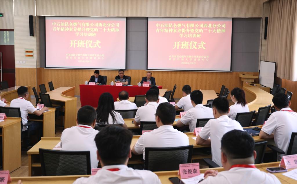 院长谈建勤以及42名来自昆仑燃气西北分公司各部门的青年干部参加开班仪式。仪式由继续教育德州扑克