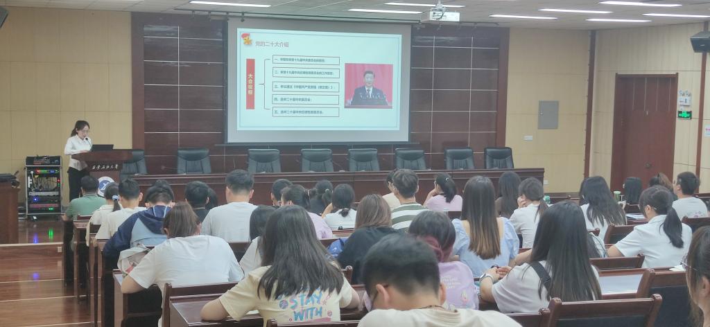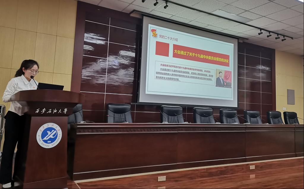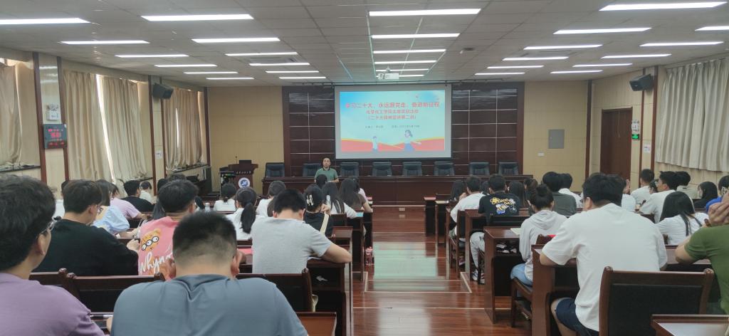 在雁塔校区会议中心第五会议室,开展学习党的二十大精神系列宣讲第二讲“学习二十大,永远跟党走,奋进新征程”,党的二十大精神研究生宣讲团成员、化学化工德州扑克