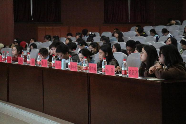 团学指导老师曹萌,2022级辅导员任仰、王业林以及团学干部参加会议并担任评委,2022级商管专业100余名学生共同观看了比赛。