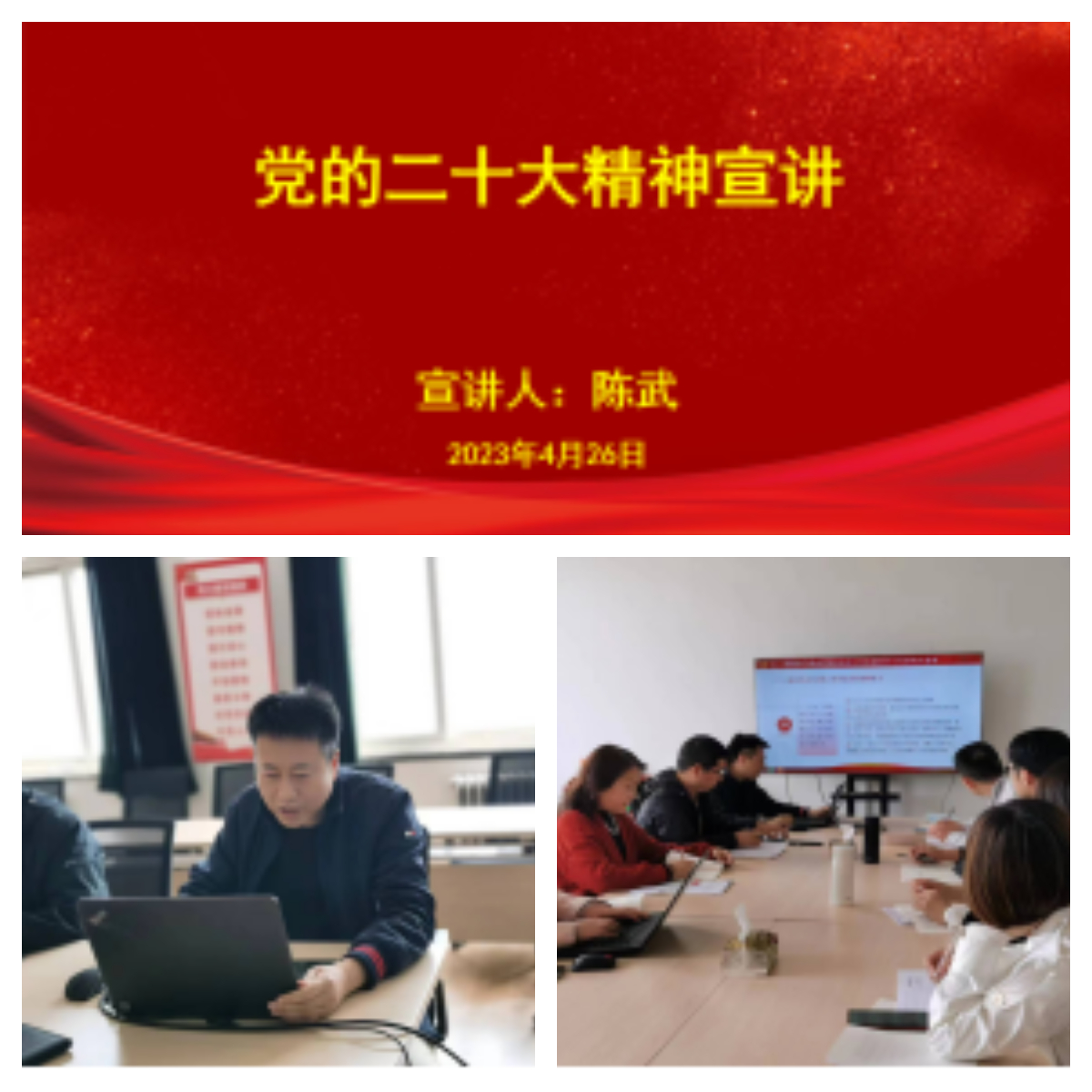 党委委员陈武做了《党的二十大精神宣讲》的报告,解读了党的二十大主题、党在过去五年的工作和新时代十年的伟大变革、马克思主义中国化时代化的新境界,详细讲述了中国式现代化的本质特征和全面建设社会主义现代化国家的目标任务等重要内容。