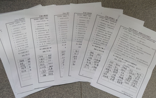 会议伊始,辅导员带领同学们分析、梳理了五一假期的安全隐患,并对公共安全、外出安全、校园安全、网络安全、人身安全等方面进一步详细讲解。同时以班级为单位组织学生签订《石油工程德州扑克