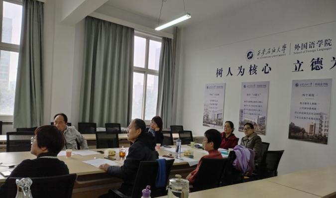 三级教授袁森,专业带头人陈柯,专业负责人孙婷、董梅,大学外语教学一部主任李雪梅,英语系主任钟泽波及教学办主任尹晓娇担任评委。