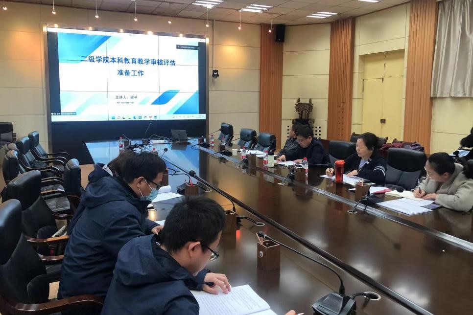 在雁塔校区会议中心第二会议室召开了本科教育教学审核评估工作推进会,并邀请辽宁石油化工大学教务处副处长梁平教授进行了线上辅导和交流,副院长王治国,各系(中心、办公室)主任、副主任参加了此次会议,会议由院长黄海主持。