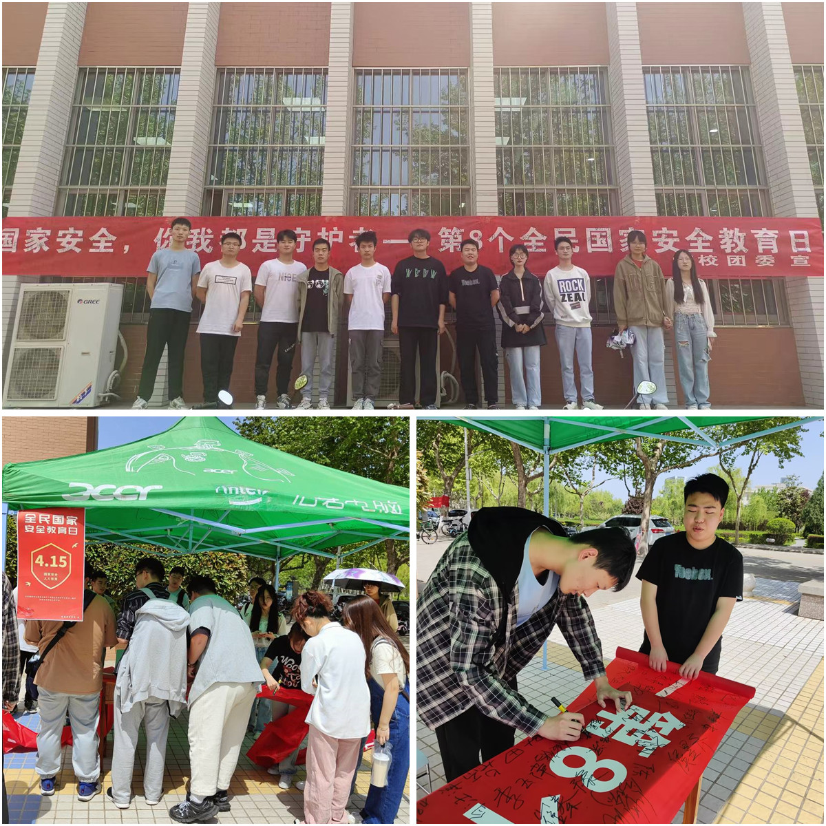 2023年4月15日是第八个全民国家安全教育日,为深入贯彻习近平总书记总体国家安全观,增强全民国家安全意识和素养,夯实以新安全格局保障新发展格局的社会基础,推动全民国家安全教育日宣传,校团委组织开展了国家安全教育主题活动,通过微信平台推送、制作宣传海报、悬挂宣传条幅、设置国家安全教育主题宣传点、条幅签名等形式,大力开展国家安全宣传教育。
