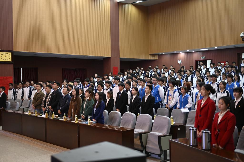 大会最后,马小刚老师进行总结讲话。讲话中,他结合习近平总书记提出的“勤学、修德、明辨、笃实”八字对新一届学生会提出四点要求:一要加强学习,不断提高自身的学习能力和工作水平;二要乐于奉献,提高道德休养;三要明辨是非,明确职责;四要脚踏实地,扎实干事。“现在,青春是用来奋斗的;将来,青春是用来回忆的。”马老师希望广大同学不负韶华,费力拼搏,用实践书写无悔的青春华章。