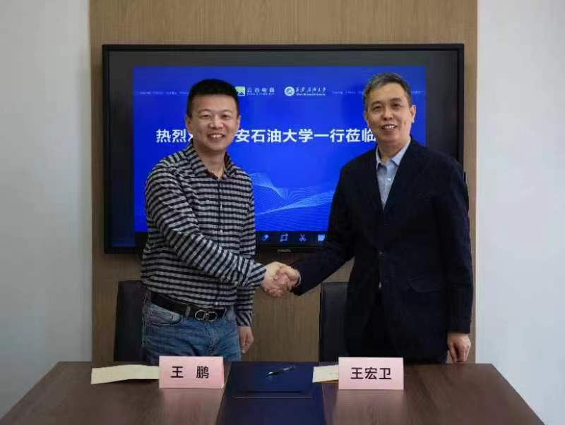 党委书记王宏卫,教学办公室主任袁静,管理科学与工程系教师赵需要、刘军峰、朱养鹏、常静等一行6人赴西安云谷壹号电子商务有限公司交流座谈,西安云谷壹号电子商务有限公司总经理王鹏、业务总监董志浩、京东渠道负责人左飞鹏、设计主管杨浩雨、客服主管杨子莹出席会议。