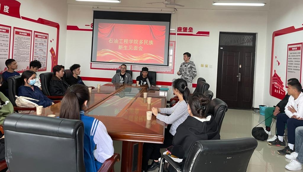 培养的民族学生榜样和民族学生工作取得的成绩,鼓励同学们在新起点树立新目标,养成良好的学习生活习惯,用自己的努力实现人生价值。同时,张建高老师向同学们提出了三点希望和要求:一要爱党爱国,充分认识党和国家对少数民族学生的关心和关怀,做爱党爱国的石油学子;二要把团结作为个人的行事准则和支撑力量,坚定政治立场,拥护民族团结;三要刻苦学习,提升学业水平,加强自我管理,做有责任有担当的奋斗者。