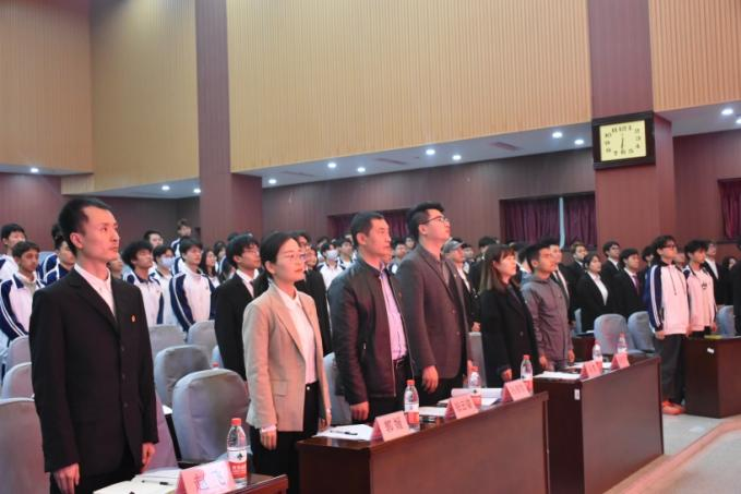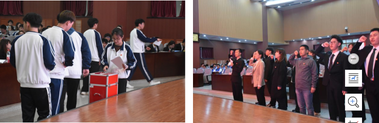 新一届团委委员和学生会委员会委员,全体新当选委员在团学指导老师赵飞的带领下面向团旗进行了庄严宣誓。
