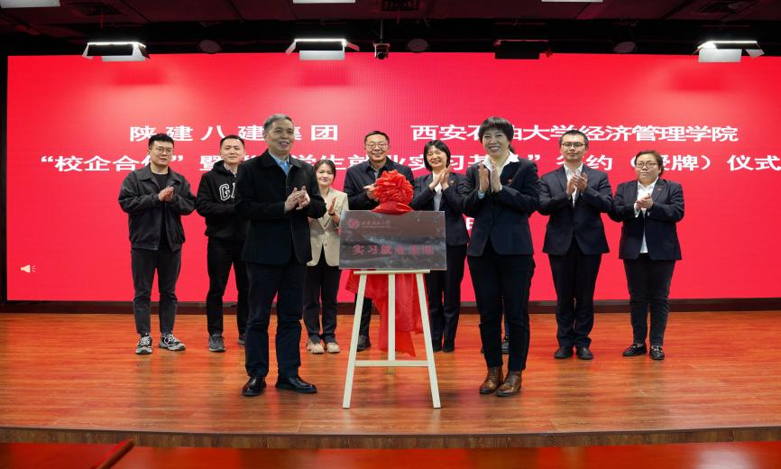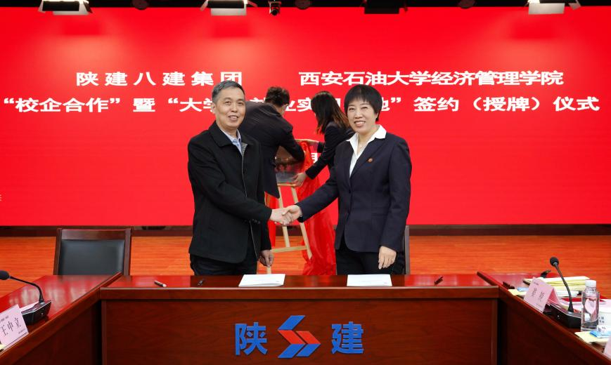与陕建八建集团签订了校企合作框架协议,并举行了就业实习基地授牌仪式。