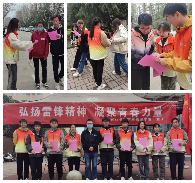 团委、学生会组织志愿者面向全校师生发放《致同学们关于学习雷锋精神的倡议书》。活动中,青年志愿者们通过面对面宣传的方式,广泛宣传践行雷锋精神的重要意义,倡议广大师生要用担当奉献诠释新时代雷锋精神,以主人翁姿态主动投身到文明校园创建中,从我做起,从现在做起,从点滴做起,不断提升文明素养,自觉传递正能量。