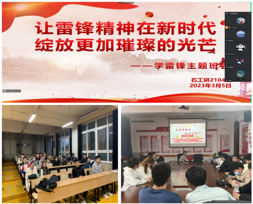 辅导员宋兴淼老师组织研究生各班级在线上、线下召开“学雷锋主题班会”,会上,宋老师带领同学们重温雷锋同志的英雄事迹并教育同学们:要以雷锋同志为榜样,学习雷锋同志的政治立场、崇高思想、敬业态度等优良作风,坚定理想信念,努力学习,完善自我,用实际行动为身边的同学做榜样,为祖国的未来发展贡献力量。