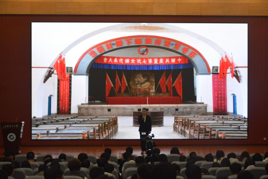 3月6日下午,由校团委和杨家岭革命旧址管理处、延安鲁艺文化中心、八路军西安办事处纪念馆联合主办的“讲好党的七大故事,助力二十大精神学习”主题报告会在鄠邑校区弘石报告厅举办。延安杨家岭革命旧址管理处主任侯振龙、延安鲁艺文化中心宣教部部长岳娟、延安杨家岭革命旧址管理处副主任薛健、德州扑克