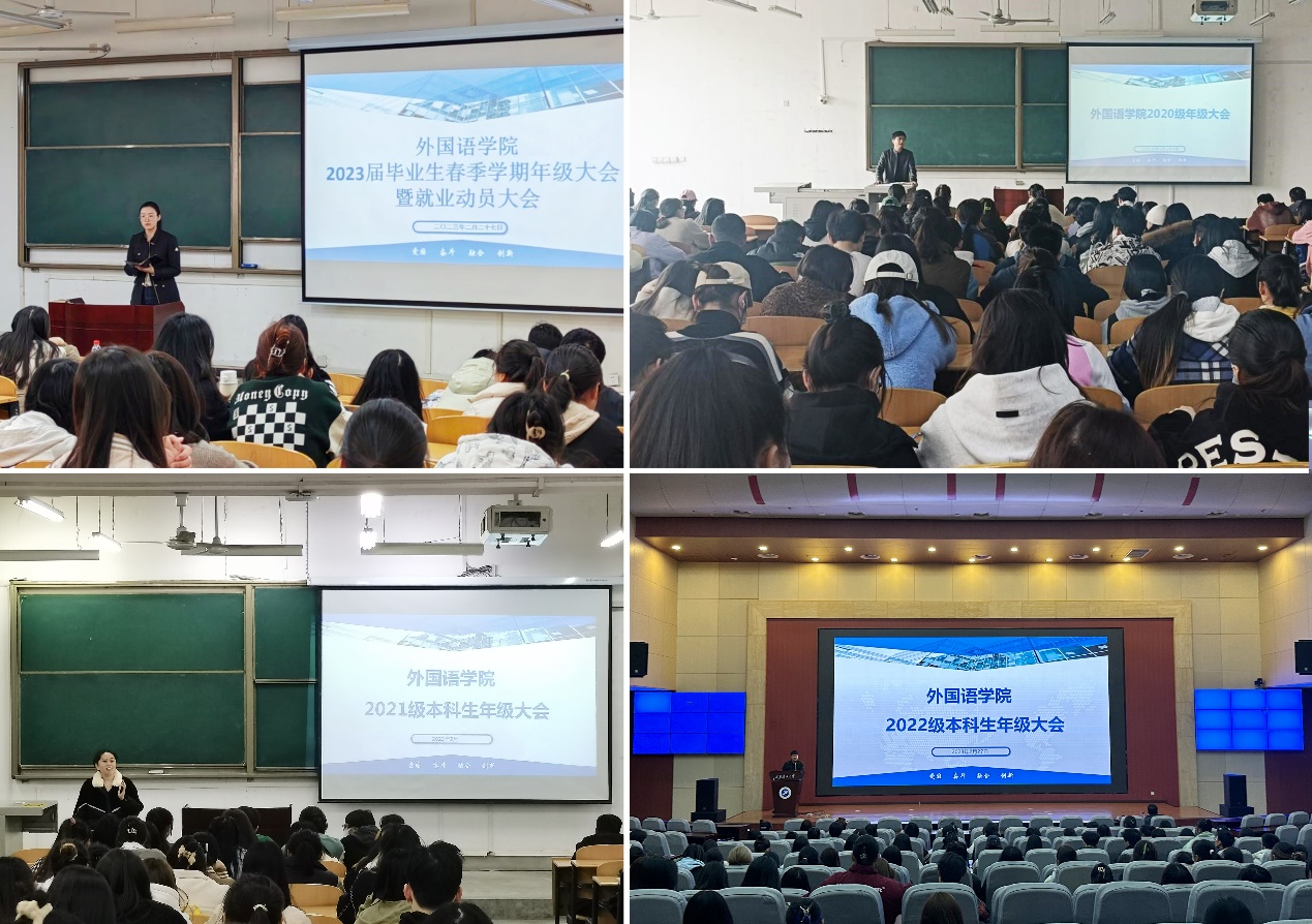 专四专八考试、考研和就业等情况,并结合各年级实际情况强调,2019级学生要结合自身实际,合理安排好学业、实习就业、考研复试等各类考试事宜,树立正确的就业观、择业观,认清就业形势,抢抓就业机会,认真做好毕业前的各项准备工作;2020级学生要积极参加各类科研竞赛,认真准备专四考试,提前做好考研、就业准备;2021级学生要做好学业规划,设立阶段目标,严格遵守德州扑克