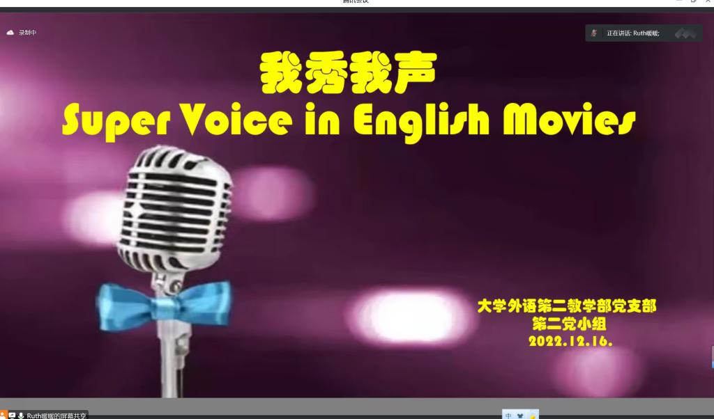 大学外语第二教学部党支部主办,支部第二党小组承办的英语新起点加油站线上系列活动(第二期)“我秀我声——2022级英语电影配音大赛”于2022年12月16日晚7:30通过腾讯会议平台如期举行。外国语德州扑克
