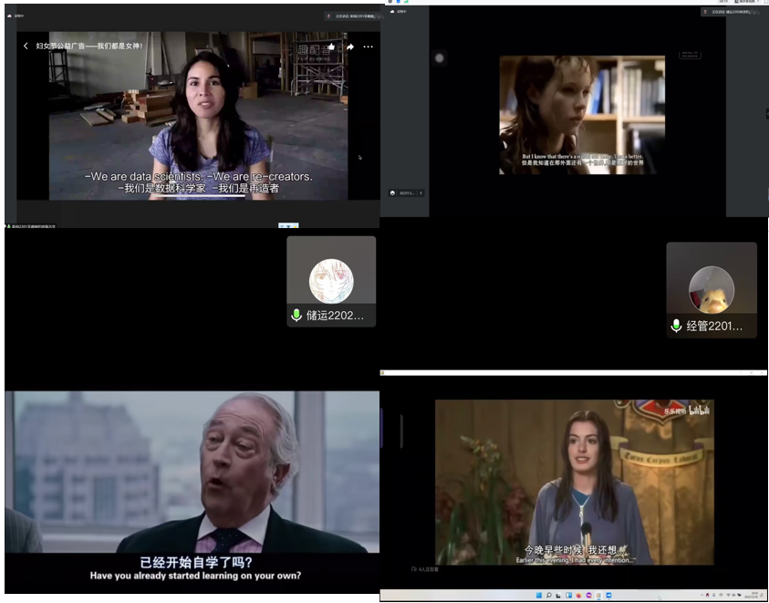 大赛以英语电影为载体,进行了五分钟内的英语电影选段配音。通过为期2个月的初赛选拔,经大学英语教师推荐、初评,最终14位同学脱颖而出进入决赛。“台上三分钟,台下十年功。“ 同学们对自己的作品反复打磨,精益求精,充分体现作品内涵,模仿语音语调,克服了当前疫情的影响,多次彩排适应了线上比赛的节奏,给大家呈现了一场听觉盛宴。同学们气定神闲、语音纯正,一个个精彩的演绎把现场师生们带入不同的场景里,“声”临其境体验英语口语魅力。最终,张莎悦同学获得一等奖,戴传裕和耿瑜璐同学获得二等奖,杨盛凯、林资忻等11位同学获得三等奖和优秀奖。