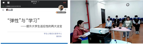邀请学生心理成长指导中心惠笑吟老师为2022级全体新生开展以 “‘弹性’与‘学习’---提升大学生适应性的两大法宝” 为主题的心理健康教育讲座,讲座通过线上+线下的方式举行。新生辅导员、心理专干奴丽艳木老师主持讲座。