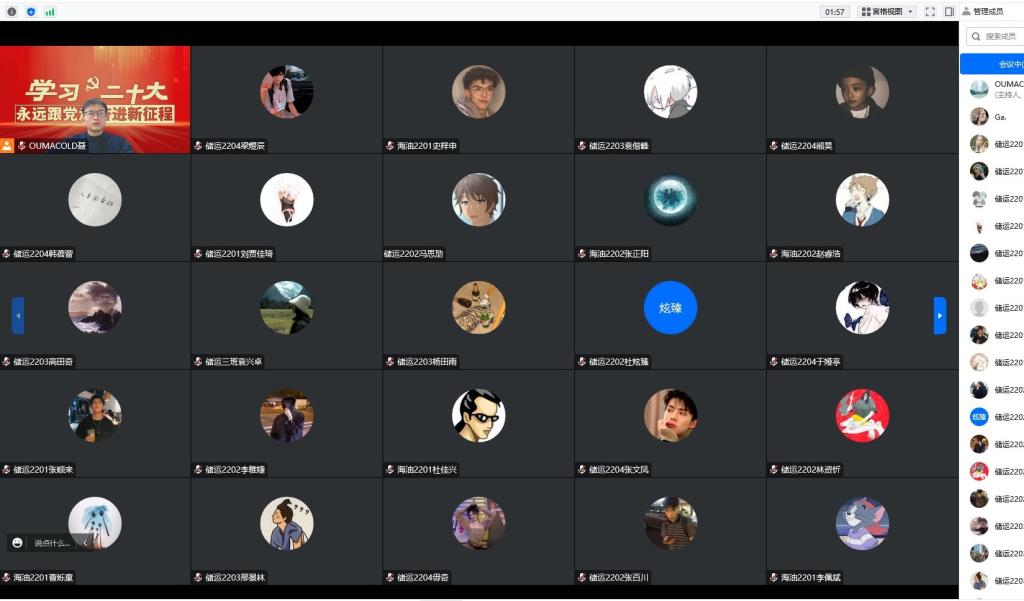 会上,聂康晨老师向与会学生深入阐述了党的二十大召开的重大意义,领学了党的二十大报告中关于习近平总书记寄语新时代中国青年的责任、使命和要求。他表明,一是当代中国青年生逢其时,前景光明。党的二十大制定全面建成社会主义现代化强国分两步走的总体战略,目标清晰,思路明确,其建设阶段正与当代青年人生奋斗黄金期高度契合,为我们青年提供了宝贵机遇和施展才干的广阔舞台。二是当代中国青年责任重大,任务艰巨。我国整体迈入现代化社会,其目标之伟大,规模之巨大前所未有。实现复兴伟业关键在党,而青年是党的未来力量和革新力量更是实现伟大复兴的先锋力量。现如今竞争核心是人才的竞争,深入实施科教兴国、人才强国、创新科技、开辟新赛道,哪一项都离不开青年的创造,迫切需要青年人才挑大梁、当主角。只有我们广大青年勠力同心,确保党的事业薪火相传,才能确保国家发展,民族振兴。三是当代中国青年要牢记嘱托,笃行不怠。作为新时代中国的见证者,奋进新征程的主力军,新时代中国青年的使命就是坚持中国共产党的领导,同人民一道为实现第二个百年奋斗目标,实现中华民族伟大复兴的中国梦而不断奋进。而高校学生群体作为广大青年中的中坚力量,肩负着实现国家富强、民族复兴、人民幸福的时代重任,更是要高举中国特色社会主义伟大旗帜,树立远大理想,担负时代责任,勇于砥砺奋斗,在实践中淬炼品格、增长本领。