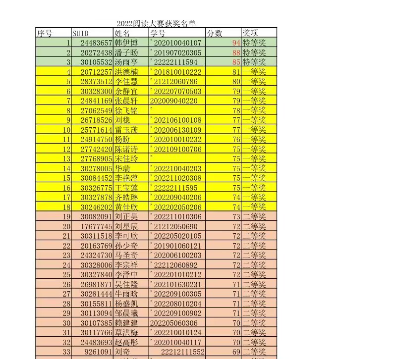 高度重视,负责老师积极组织安排选拔赛,经过两次严格的线上初赛选拔,参赛的492名同学中有91名同学进入线下复赛,最终翻译2001韩伊博,通信1903潘子旸和翻译研2022汤雨亭等3名同学以优异的成绩脱颖而出获得特等奖,英语2002洪德楠等15名同学获得一等奖,勘探2203刘正昊等25名同学获二等奖,英语2101胡雨桐等29名同学获得三等奖。其中三名获得特等奖同学将代表德州扑克