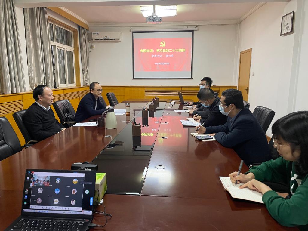 10月28日下午,党政办公室党支部在雁塔校区行政楼二楼会议室召开支部党员大会,专题学习党的二十大精神。校党委书记赛云秀作为普通党员参加所在党政办公室党支部党员大会,支部大会由支部书记赵健主持,全体党员参加。