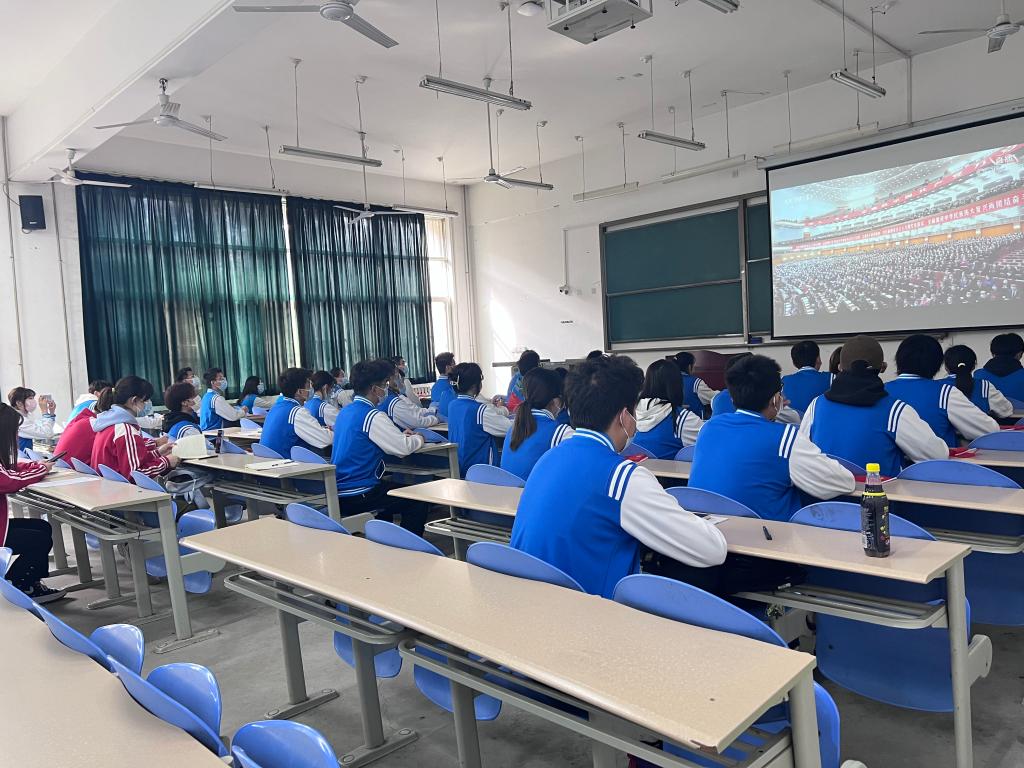 全体师生以党支部、团支部、办公室等方式,在鄠邑校区学生办公室,博览楼及腾讯会议等9个场次收听收看大会报告,第一时间领会大会精神。