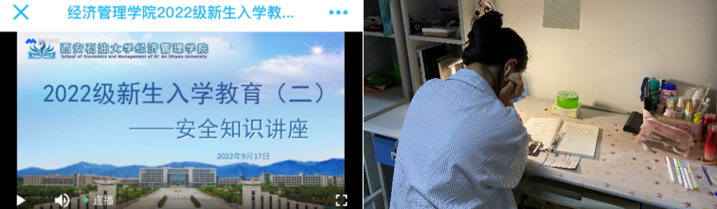 以线上方式开展2022级新生入学教育。本次入学教育包括石油精神教育、安全知识讲座、学长经验分享、团学活动介绍、校规校纪教育、疫情防控教育、新生家长会议、班级建设分享、心理健康教育、新生主题班会、入学教育测试等环节,全体2022级新生有序参加。