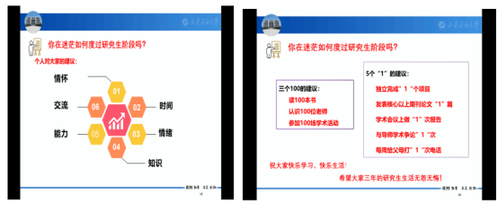 的管理和教学教育过程,帮助同学们尽快开启研究生学习生活、激发他们的科研兴趣,鼓励研究生新生坚持不懈追求思想政治上的进步、知识能力上的进步、信念勇气上的进步和精神境界上的进步,在青春的赛道上奋力奔跑,争取跑出当代青年的最好成绩!