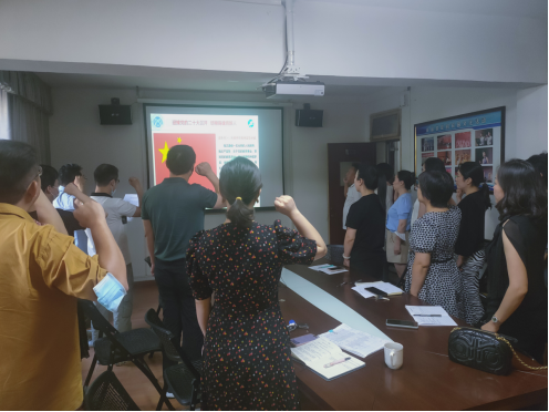 在教师宣誓承诺环节,由年度校级优秀教师赵丹宁老师领誓,全体教职工面向国旗庄严宣誓,重温作为一名光荣的人民教师应承担的责任义务与神圣使命,切实增强教师教书育人责任感、使命感和荣誉感。