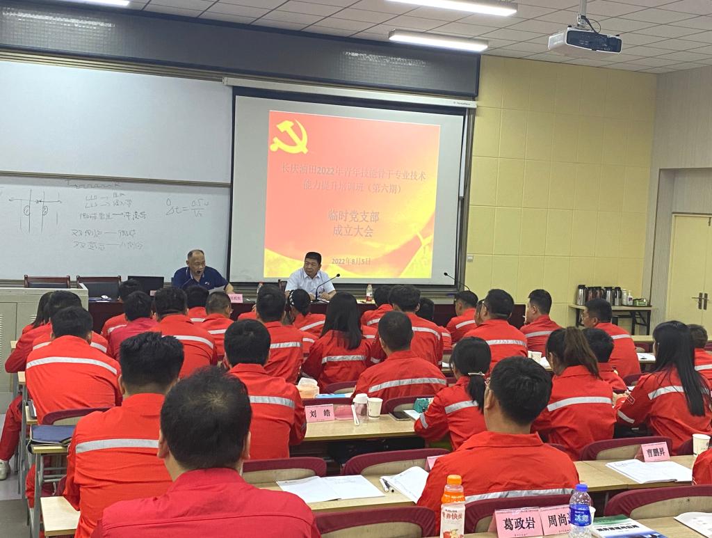 在明德校区召开长庆油田青年技能骨干专业技术能力提升培训班临时党支部成立大会,继续教育德州扑克