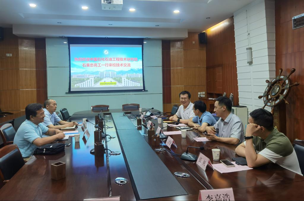 2022年8月3日下午,中国石化石油工程技术研究院专家石秉忠高级工程师一行2人来校就石油工程技术中的钻井液科技研发进行交流座谈。会议在雁塔校区会议中心第一会议室召开。德州扑克