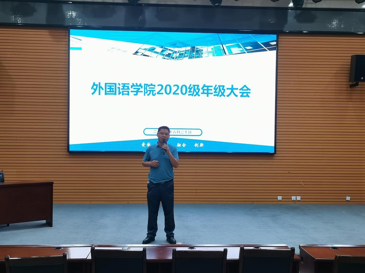 党委副书记王业青到场指导大会,年级大会由2020级辅导员陈浩老师主持,2020级全体学生参加。