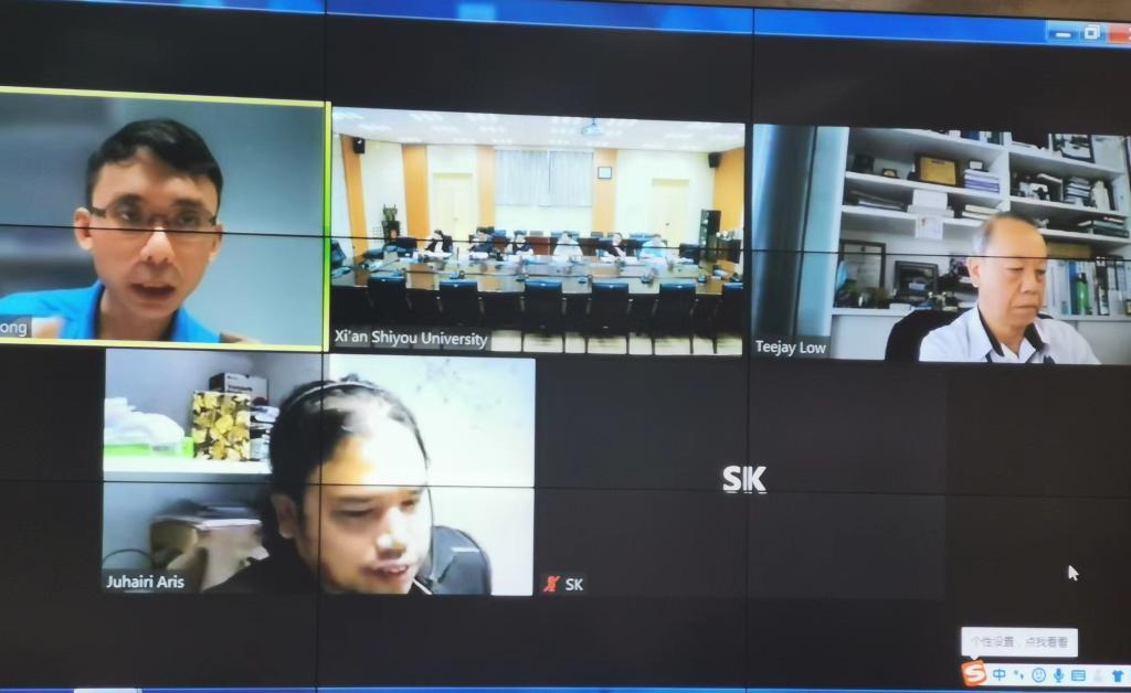 景明利教授、国际交流与合作处王文化副处长,马来西亚石油大学机械工程AP Dr Saravanan Karuppanan、石油工程Mr Juhairi Aris B M Shuhli、石油地质 Mr Choong Chee Meng、计算机AP Dr Low Tan Jung等出席视频座谈会。