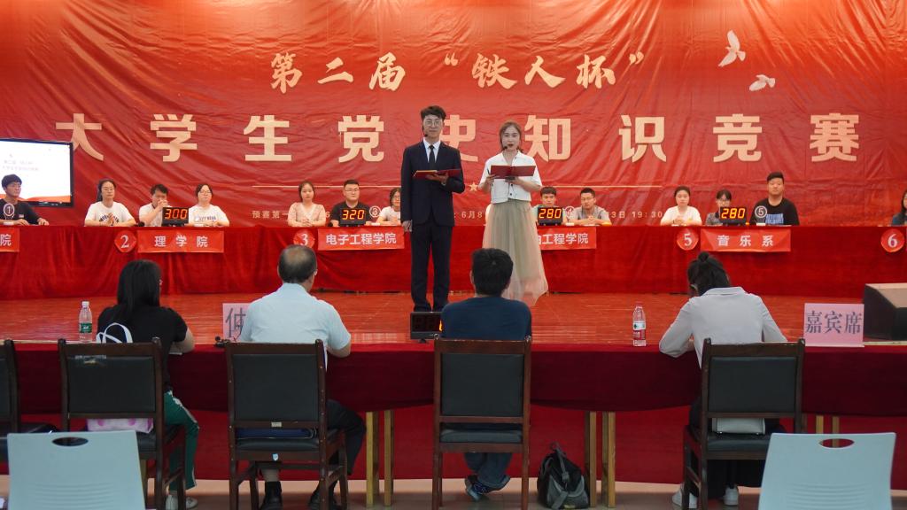 在鄠邑校区腾辉大学生活动中心举行第二届“铁人杯”大学生党史知识竞赛开幕式暨第一场预赛。