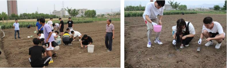 在一个半小时的时间里,参与活动的同学们生拿着铁锨、水桶、玉米种子,三人成组,分工协作,翻耕松土、挖坑润土、播下种子、填土覆盖。在校园管理中心专业人员指导下,环环紧扣,有条不紊,井然有序,圆满完成此次劳动实践活动。大家切身体验了玉米种植全过程,感知粮食来之不易,在心里也种下了一粒“崇尚劳动、尊重劳动”的种子,期待生根发芽、开花结果!