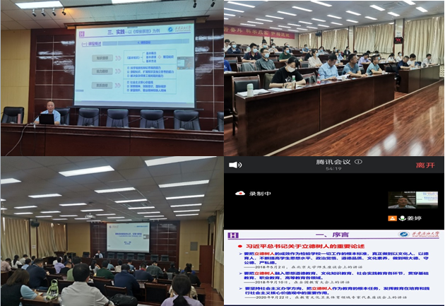 特邀省级教学名师周勇教授给全院教职工作了题为“课程思政的认识、实践与体会”的专题报告。会议按照疫情防控工作要求,采用线下、线上相结合的模式进行,由院长张骁勇主持。