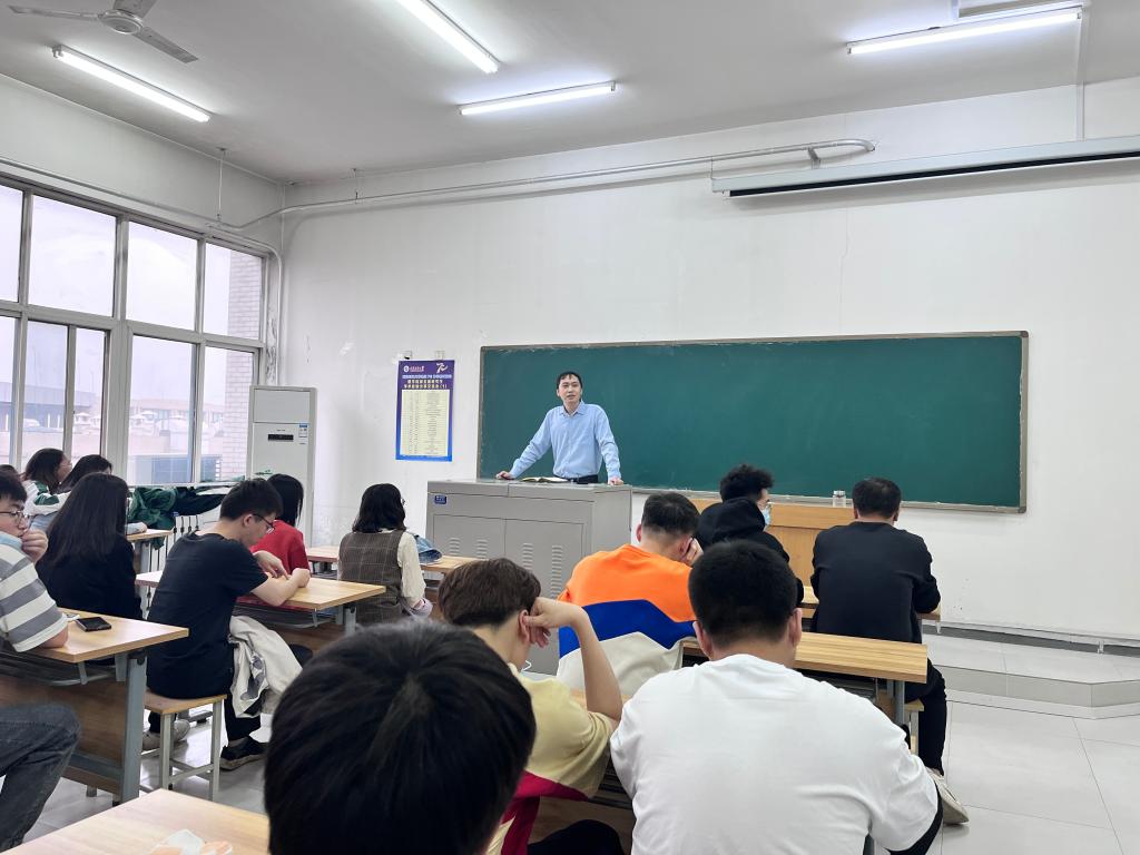 学工办主任丁亦喆向各班级通报就业考研进展,横向比较前两年同期数据,以生动的事例教育引导大家振奋精神再出发,早日实现高质量就业。