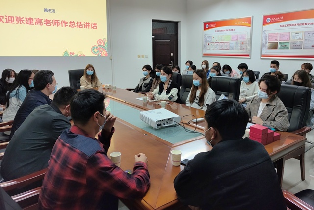 党委副书记张建高、新疆教育系统派驻教师廖静、2019级辅导员李刚及30名新疆籍少数民族学生参加,会议由2020级辅导员祖力皮亚主持。