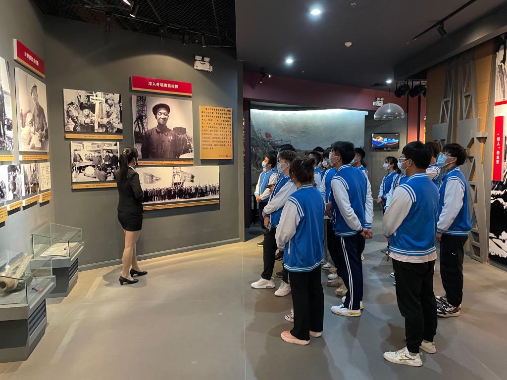 在铁人纪念馆,全体学生干部依次从“苦难童年”、“赤诚报国”、“艰苦创业”、“科学求实”、“无私奉献”、“鞠躬尽瘁”、“亲切关怀”、“精神永存”八个方面深入了解了王进喜同志的生平业绩和我国石油工业发展初期的艰辛历程。通过参观王进喜同志当年居住过的房屋、在油田火热工作的场景、周总理亲切接见的场面及铁人背后的情怀故事,全体学生干部切实体会到王进喜同志“宁可少活二十年,拼命也要拿下大油田”的忘我精神、“有条件要上,没条件创造条件也要上”的坚定信念和“三老四严五讲”的严谨作风,深刻感受了大庆精神、铁人精神所蕴涵的“爱国、创业、求实、奉献”的精神实质。