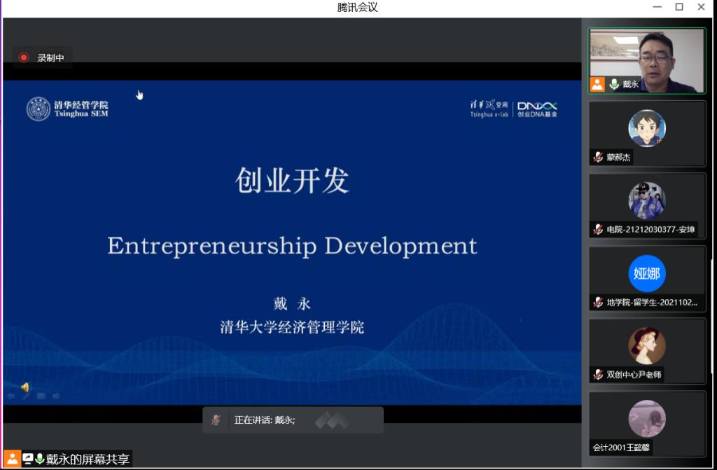 为做好疫情期间“停课不停学,停课不停创”的线上教学工作,创新创业中心结合工作实际,开展创新创业线上教育。3月19日下午14点,由创新创业中心主办的第九期《创新创业大讲堂》通过腾讯会议顺利举行。本期授课主题是《创业开发》,特邀了清华大学二十国集团(G20)创业研究中心戴永老师主讲。