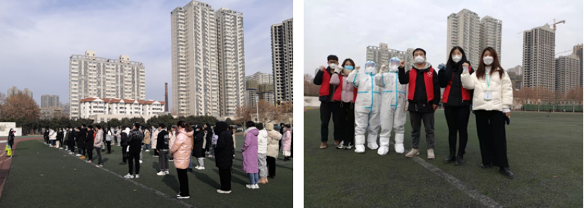 共派出10余名研究生志愿者,承担核酸检测时维持现场秩序以及预检组等相关工作任务,及时引导广大师生安全有序做好检测工作。