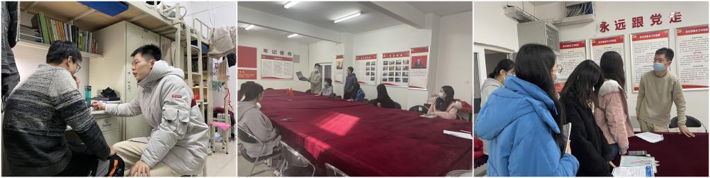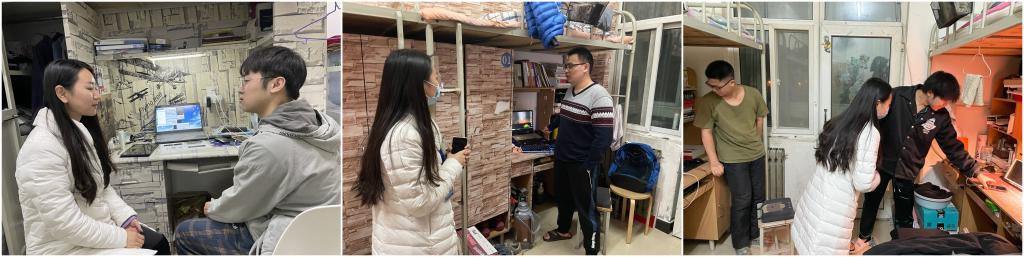 1月8日-1月15日,毕轶慧、钱宇航、张欣乐老师深入学生宿舍与学生进行谈心谈话,针对考研后有就业想法的学生,毕轶慧为学生详细讲解就业政策,鼓励学生做好两手准备,在等待考研成绩公布的期间,主动做好求职准备,积极参加线上宣讲会。钱宇航老师通过80余次的点对点沟通,对未就业学生情况进行了全面摸排并按类分组,组建待就业类QQ群组5个,涵盖研究生复试类、公考类、培训类、慢就业类等方面。