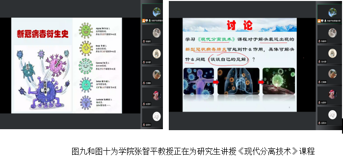 专业课授课老师都在线上课堂一开始时,结合当下疫情防控,深挖思政元素,给研究生介绍有关冠状病毒和抗病毒药物的知识,让同学们学习了新型冠状病毒的特点、防控重点工作、药物研发与使用现状等知识。