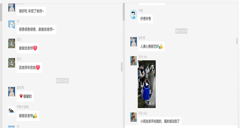研究生导师在关注学习、思想动态的同时,还想方设法为研究生带去温暖。疫情无情,导师有情,即使是寒冷的冬天,研究生的心里仍是暖暖的。1月7日下午,武丹老师在校内超市购买食材,在家亲自做红烧鸡翅,炸土豆条,忙碌整个下午,在晚饭点把热乎乎的红烧鸡翅和土豆条送到研究生手里。研究生纷纷表达对老师的感谢,在群里分享道:“鸡翅特别香,心里暖暖的”。