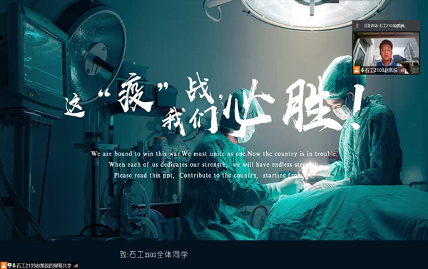 的号召,克服困难,服从安排,在宿舍做好防疫工作,认真完成线上课程,以优秀的成绩迎接春天的到来。
