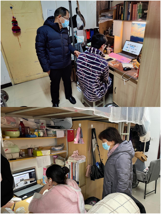 院长仵杰、党委副书记毕轶慧深入学生宿舍,对学生参加线上学习情况进行了巡查。教学管理人员利用网络、电话等方式深入教师与学生中,询问教师线上教学情况,了解学生线上学习效果,针对学生存在的线上教学疑问进行解答。