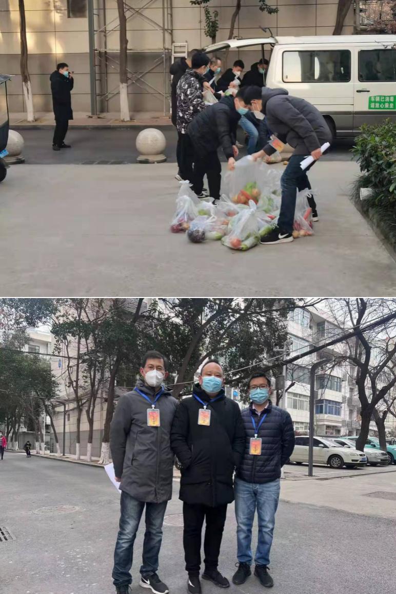 教师党员顶着寒风在户外坚持工作,他们排成一队有序运送着蔬菜物资。寒气侵体四肢早已冻僵,即使是午休时间也坚守岗位。没有桌子石墩来凑,没有凳子就蹲下休息,饭菜伴着冷风送入口中,但是他们未曾有过一句抱怨。学高为师,身正为范,经管院的教师党员在危难时期甘于奉献、舍我其谁的精神值得点赞和敬佩。